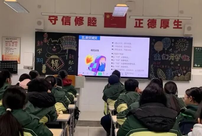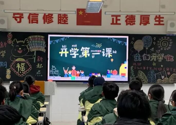 中学“开学第一课”上,701班班主任唐小娇带领学生浏览网络安全相关知识。这天,该校以假日趣事、学校安全为主题展开“开学第一课”。