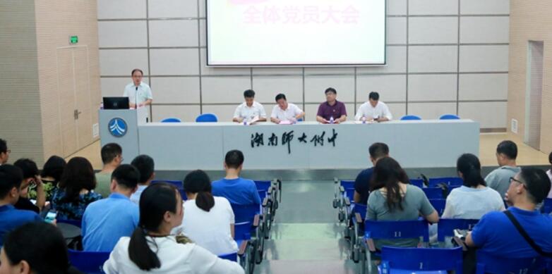 二十日下午,我校2019—2020学年度第一学期党员大会在会议厅举行。党委书记黄月初,党委委员、副校长陈迪勋,党委委员、校长助理苏建祥,党委委员、校长助理廖强在主席台就座。本部整体在职教职工党员,离退休党总支、湖南广益中学党总支成员及支部书记共200余人参加会议。会议由党委作业室主任伏炎安掌管。