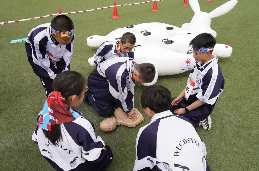 来自乌兰察布市试验中学、集宁区新世纪中学、北京宽高四子王试验学校、集宁师范学院附属试验中学、乌兰察布市艺术学校的300名学生组成50支队伍以校际比拼的方式参与竞赛,同学们体验兴趣运动项目后,逐一完成了骨折固定、海姆立克急救法及心肺复苏等急救常识问答和技术操作。乌兰察布市红十字会急救训练师资在赛前为同学们演示和讲解了AED(自动体外除颤仪)的运用等急救常识技术。