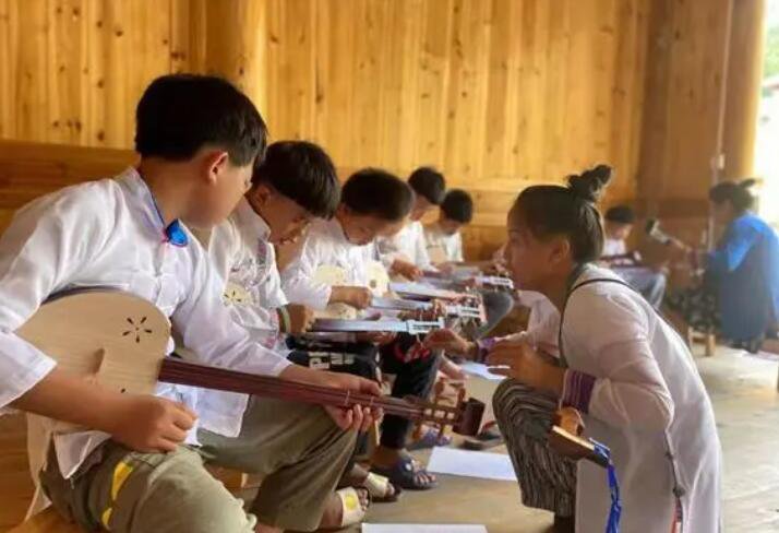 黃崗小學師生在操練侗族琵琶彈奏近年來,黃崗小學為弘揚優異傳統文明,豐厚校園生活,將侗族大歌、牛腿琴歌、琵琶彈奏、踩歌堂等10余項傳統文明引入校園、引入講堂,推動著當地特征的校園文明,為教育展開註入了新活力。