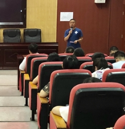 湘安消防公益服务中心教员吴悔结合典型案例和自身经验,展示了一场场因小失大所酿成的惨祸,让人触目惊心。他以幽默风趣的语言,将严肃甚至沉重的话题讲的引人入胜,发人深省。在愉悦的氛围中,参会者深入了解了消防安全基础知识、防火的基本措施、火场逃生自救的方法、初期火灾的扑救、如何报火警等内容。吴悔老师还向与会者介绍了各类火灾防控产品,鼓励学校、教职工定期进行消防安全自查、整改,并引导教职工以培训为契机,向学生和亲朋好友传递消防安全知识,营造良好的消防宣传氛围。